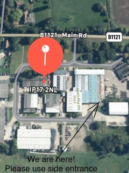 The gym is on Carlton Industrial Estate, IP17 2NL. You can either park at the front of the estate and walk down the side of the building (down the side of CRASL Accountants) or follow the 4Fun signs round to the back of the estate where there is more parking.